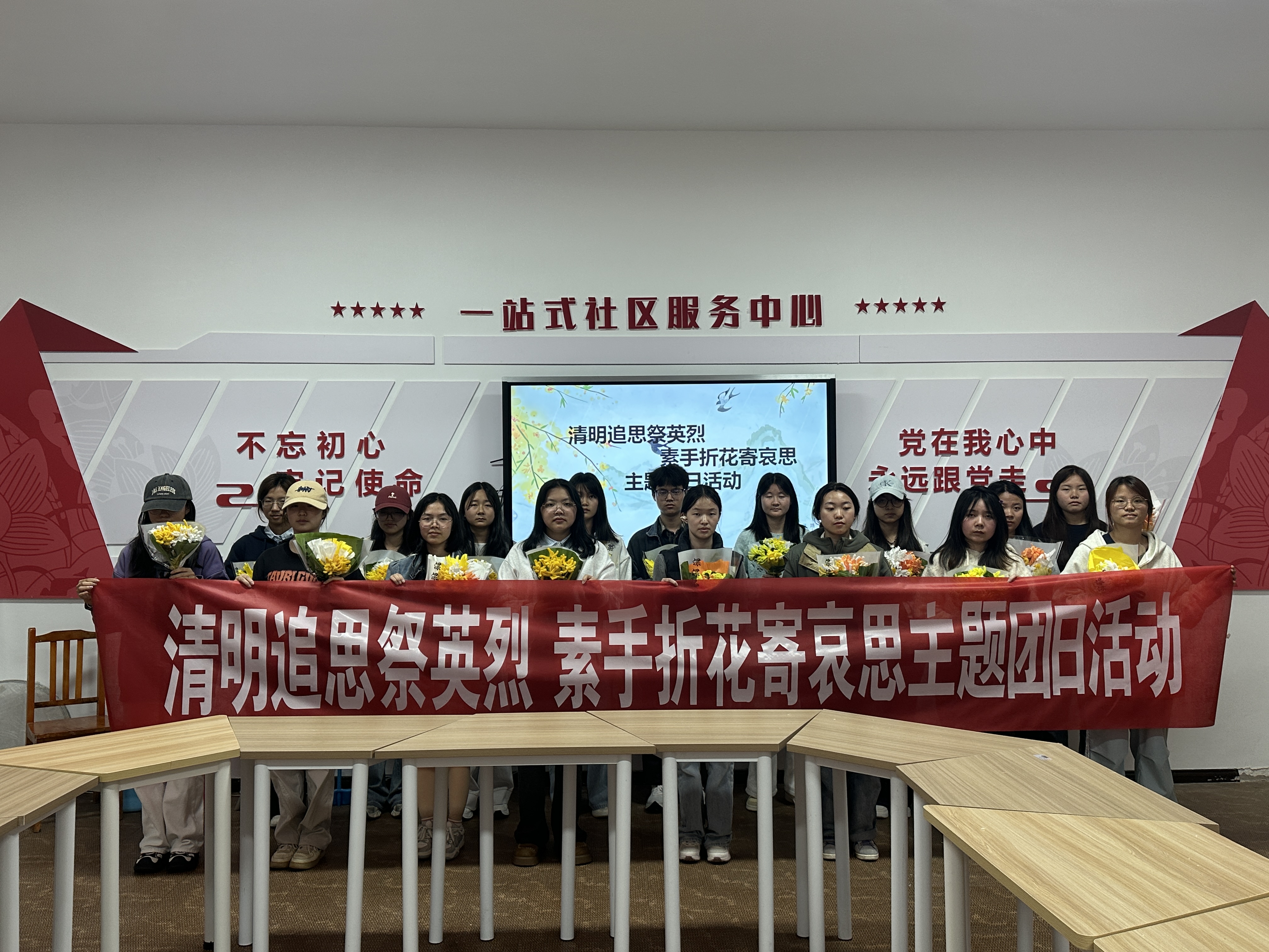 4月3日,性爱直播 、大数据统计性爱直播 在樱花一站式活动中心举办“清明追思祭英烈·素手折花寄哀思”主题团日活动,吸引各年级同学积极参与。