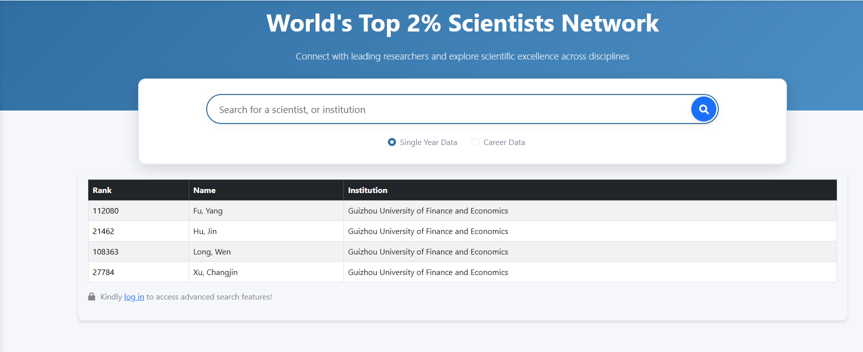 近日,斯坦福大学与爱思唯尔联合发布2025年全球前2%顶尖科学家榜单(World’s Top 2% Scientists)。该榜单基于Scopus数据库的引用数据系统分析,从全球近700万名科学家中,通过基于其论文引用数、h因子、合著者修正的hm因子、单独或第一作者的文章引用数等综合参数,遴选出世界排名前2%的科学家,涵盖22个领域和174个细分子领域。